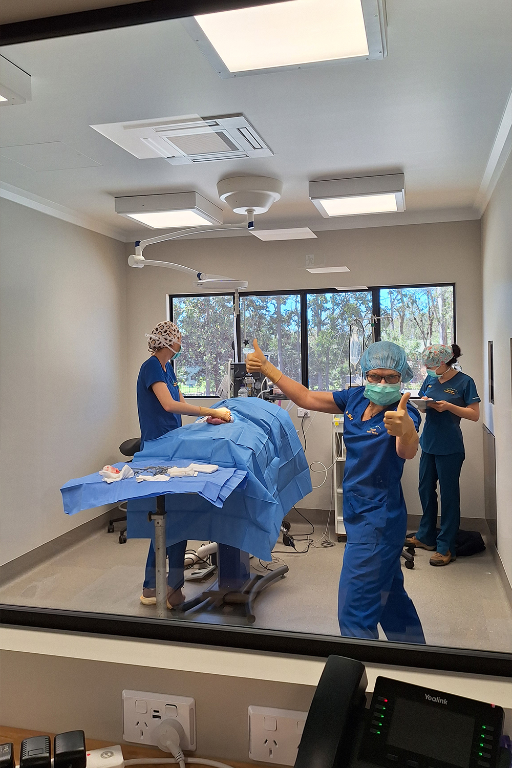 She worked as a mixed practitioner for many years but her early passion for surgery has now become her main focus. She has over 30 years of experience and extra training in orthopaedic and soft tissue surgery. She has spent many years lecturing and teaching surgical skills at James Cook University in Townsville.